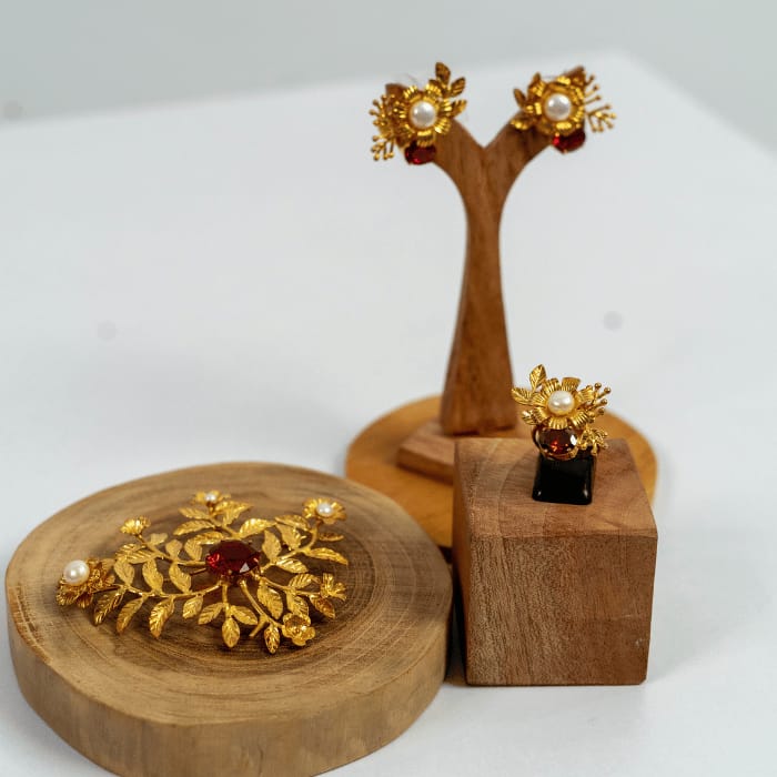 1 Set Bros Bunga Dedaunan Permata Mirah Triji