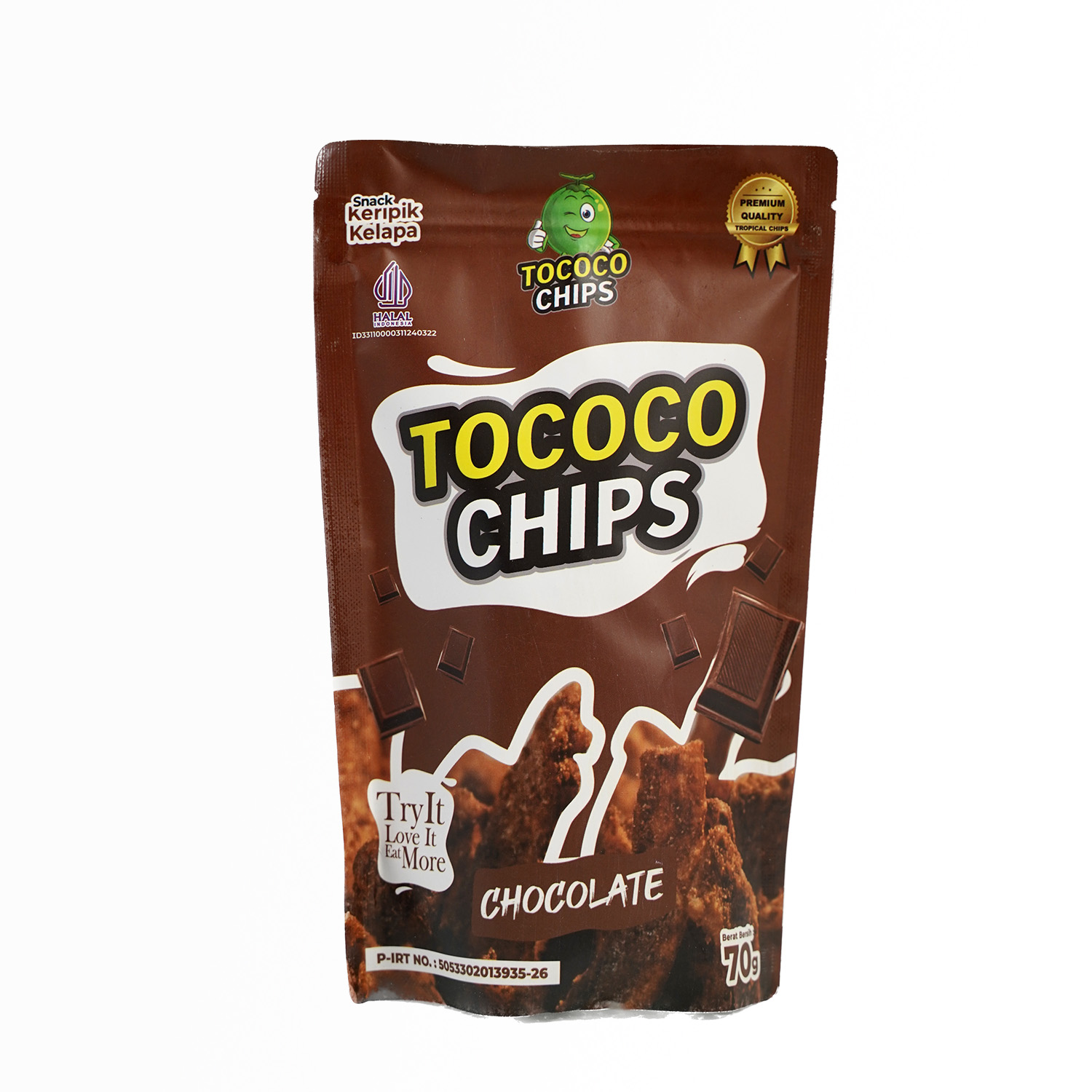 Tococo Chips is an FnB industry, especially processed coconut which is processed into Contemporary Snacks. Established in 2021, this is due to the fact that coconut processing is not optimal, where coconut is quite abundant in Banyumas Regency. With a target market for young people aged 20-30s, Tococo Chips has the tag line "Snack hits nowadays". Tococo Chips uses selected coconuts, empowers women around and also promotes regional potential commodities.