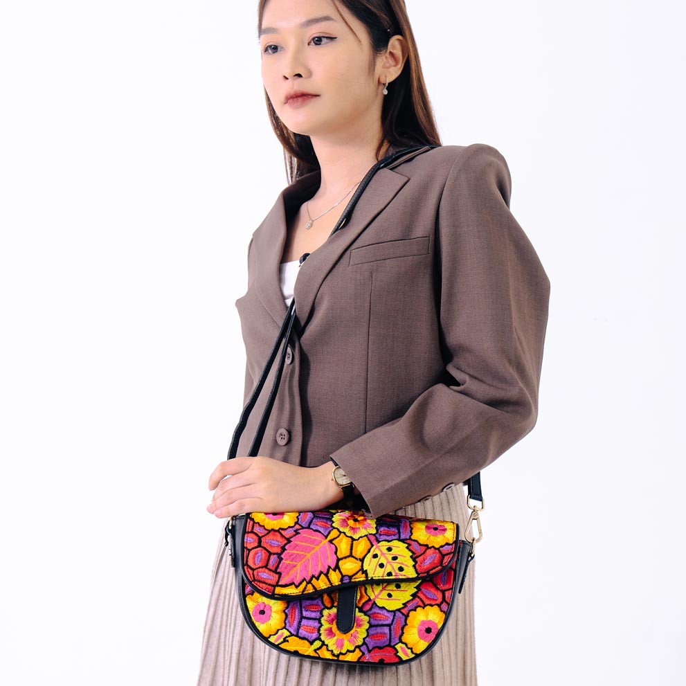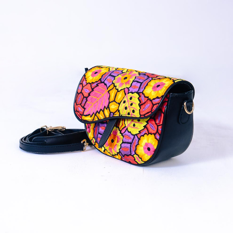 Embroidered Leather Bag with Abstract Jasmine Motif