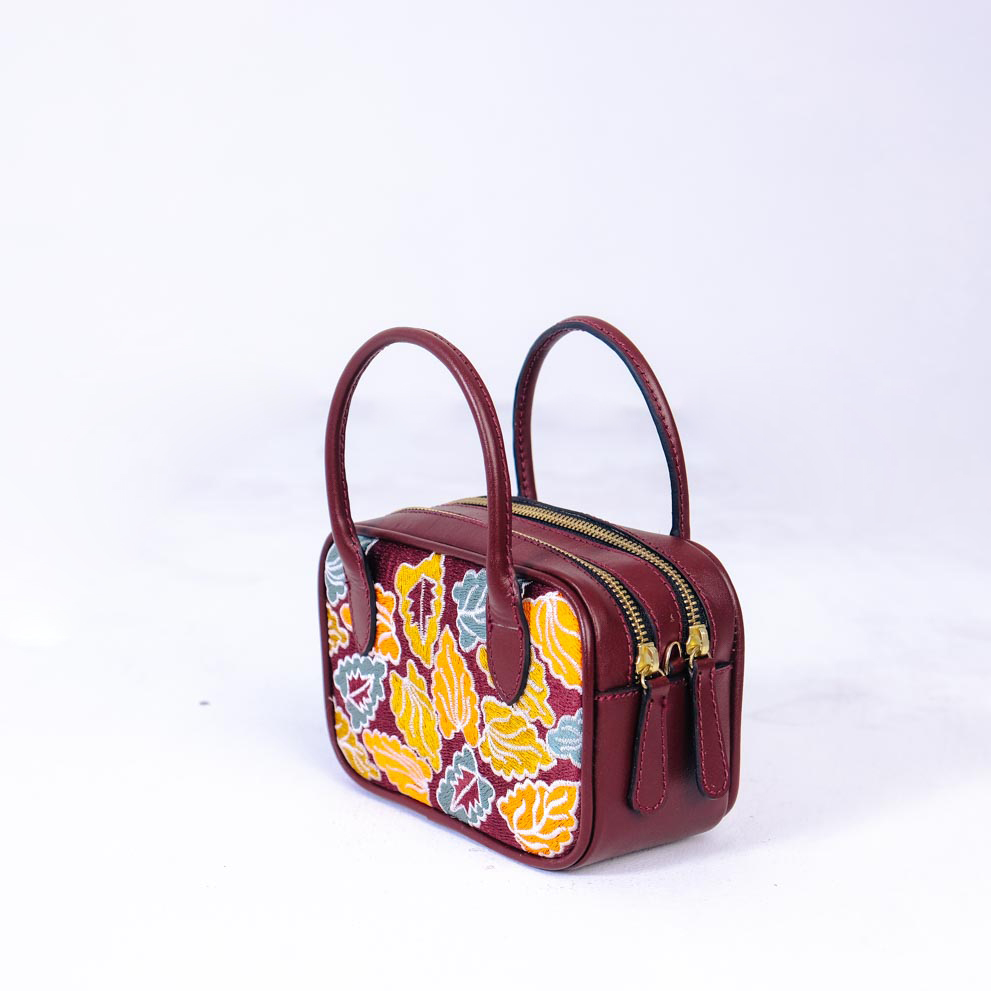 Laluna Embroidered Leather Bag with Taro Leaf Motif