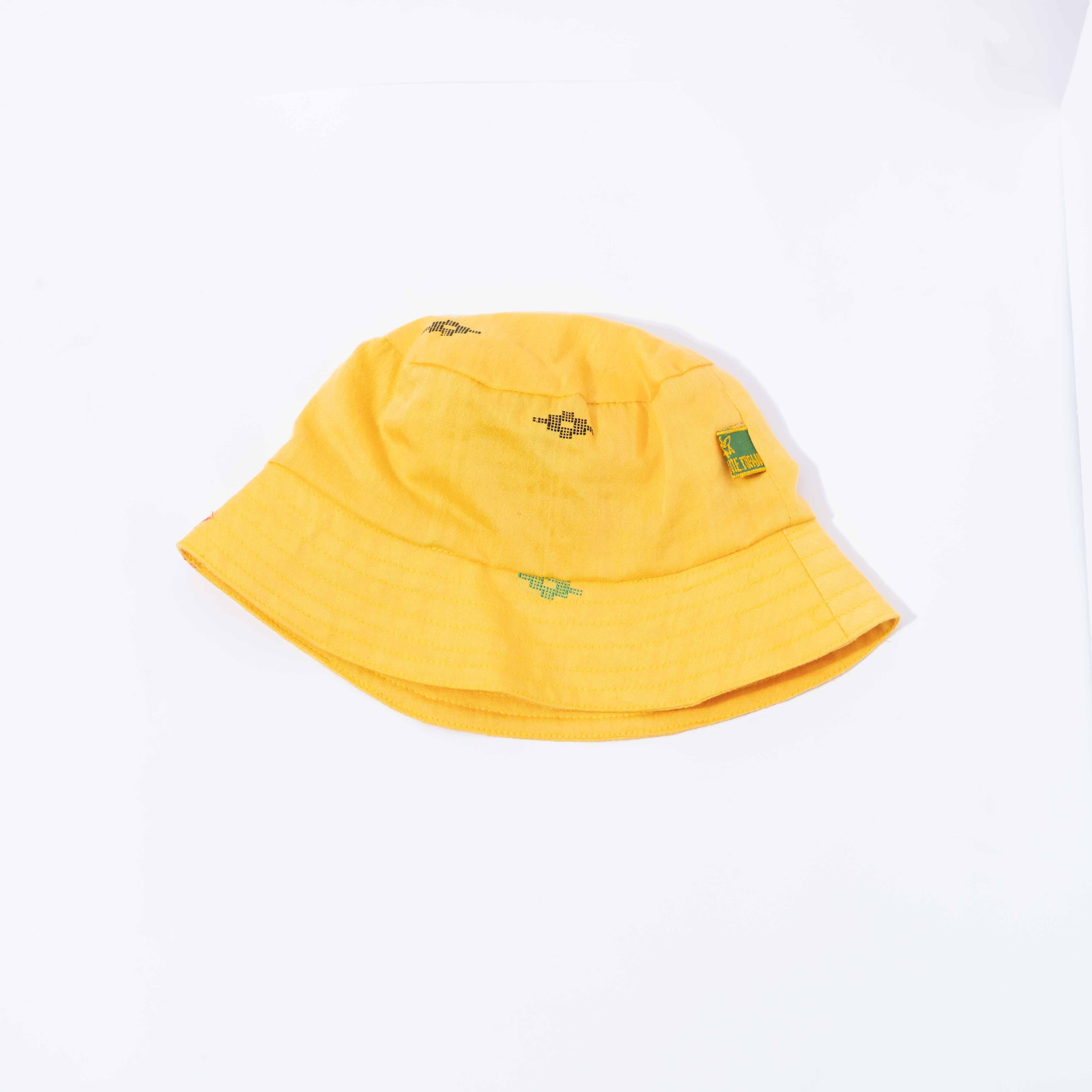Bucket Hat product which is a derivative of woven fabric. The production of this bucket hat uses waste materials from the weaving process. This bucket hat innovation arises from the spirit of a green process economy which continues to be implemented as a form of concern for the environment