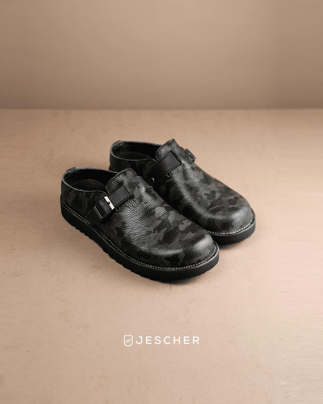 Effortlessly stylish and comfortably cool, Jescher Elefante sandals in camo leather with black accents are the perfect choice for any casual occasion. The bold camouflage print is elevated by the sleek black accents, creating a unique and fashionable look