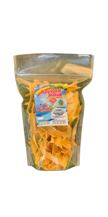 Keripik Sukun Tiga Peramata represents the delicacy of breadfruit chips made with love in Baru village, Manggar, East Belitung. Baked with a special technique, these chips deliver the crunchy and soft taste of selected breadfruit, appetizing and rich in nutrition. A commitment to quality and hygiene is evident from the raw material process to packaging, making each pack a symbol of innovation and tradition.