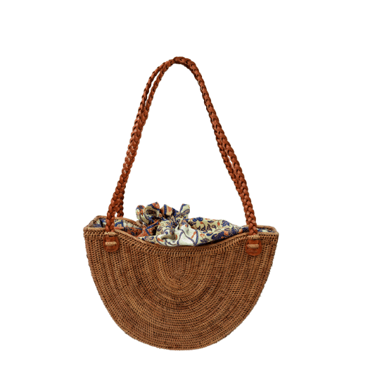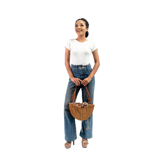 This product is made from natural fiber from hata woven by local female craftsmen which is combined with batik cloth and leather.