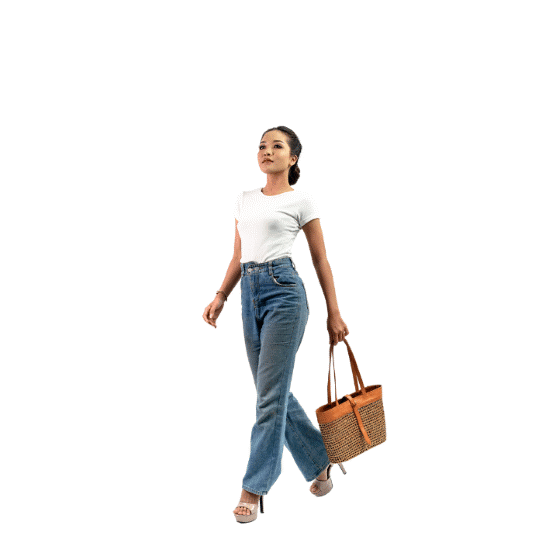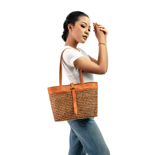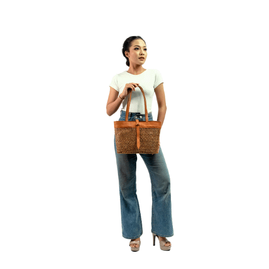 This product is made from natural fiber from hata woven by local female craftsmen which is combined with batik cloth and leather.