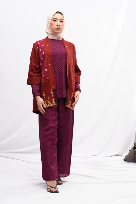 The brand, which was started in 1990 as a Palembang Songket craftsman, has won multiple awards. Through the fashion industry, it raises the value of Palembang textiles, and the Perada Milenial is its signature design.