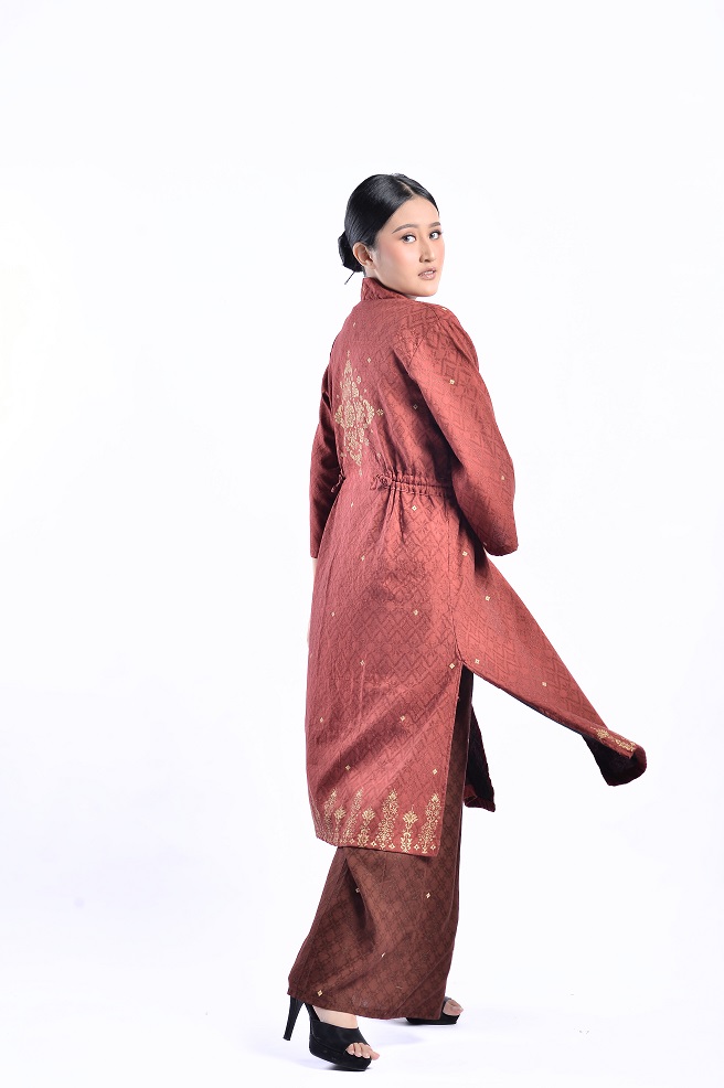The brand, which was started in 1990 as a Palembang Songket craftsman, has won multiple awards. Through the fashion industry, it raises the value of Palembang textiles, and the Perada Milenial is its signature design.