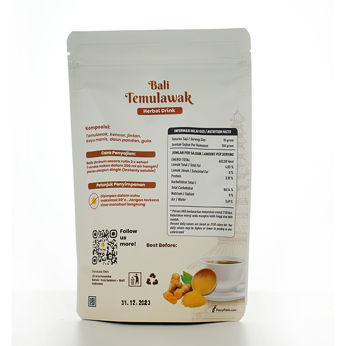 Material Content: temulawak, kencur, jintan, kayu manis, daun pandan, gula