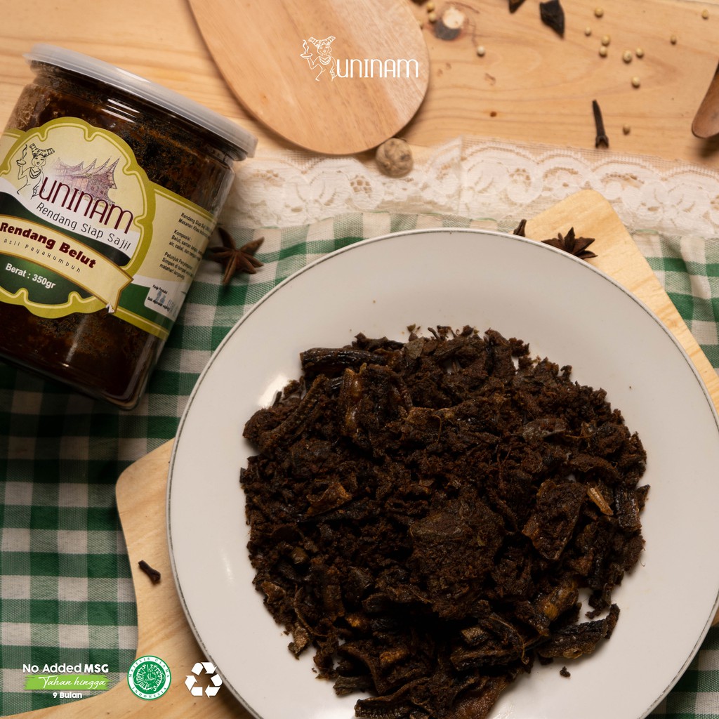 Rendang Belut Uninam dimasak di Payakumbuh dengan menggunakan tungku kayu, hingga kering, sehingga Rendang Belut Uninam dapat tahan lama hingga 11 bulan di dalam kemasan, tanpa menggunakan bahan pengawet.