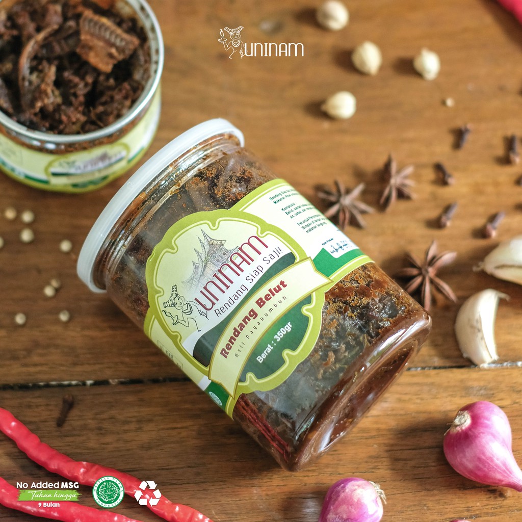 Rendang Uninam dikemas dalam kemasan cantik yg hygienis. Cocok untuk hidangan keluarga anda tercinta, untuk buah tangan, oleh-oleh teman dan handai taulan, juga untuk stok makanan anak kost / pesantren, sangat cocok dibawa sebagai bekal untuk travelling.