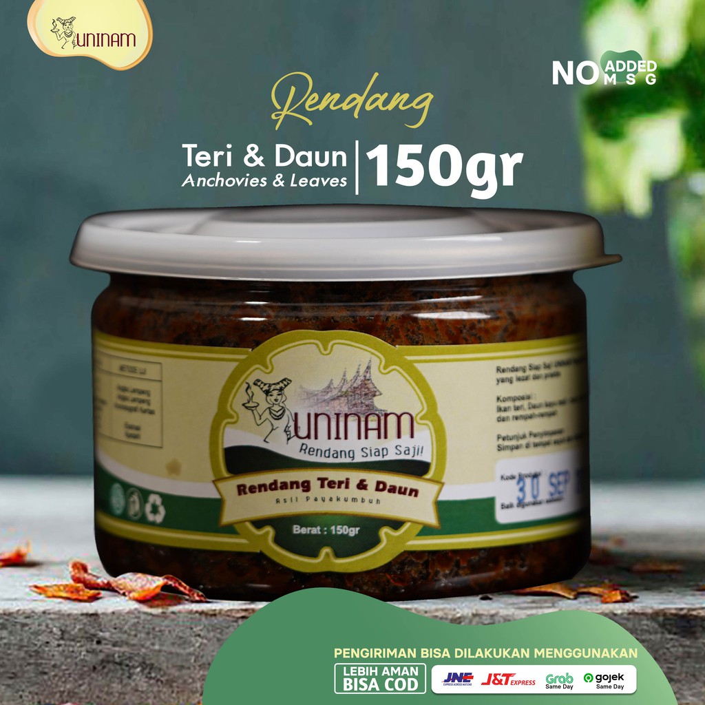Rendang Teri dan Daun Uninam di masak dengan menggunakan resep tradisi keluarga yg sudah turum temurun ,dimasak menggunakan tungku kayu dengan bahan bahan alami, berkualitas premium. Tanpa menggunakan MSG dan bahan pengawet, dikemas dengan tampilan kemasan yg cantik menarik dan hygienis.