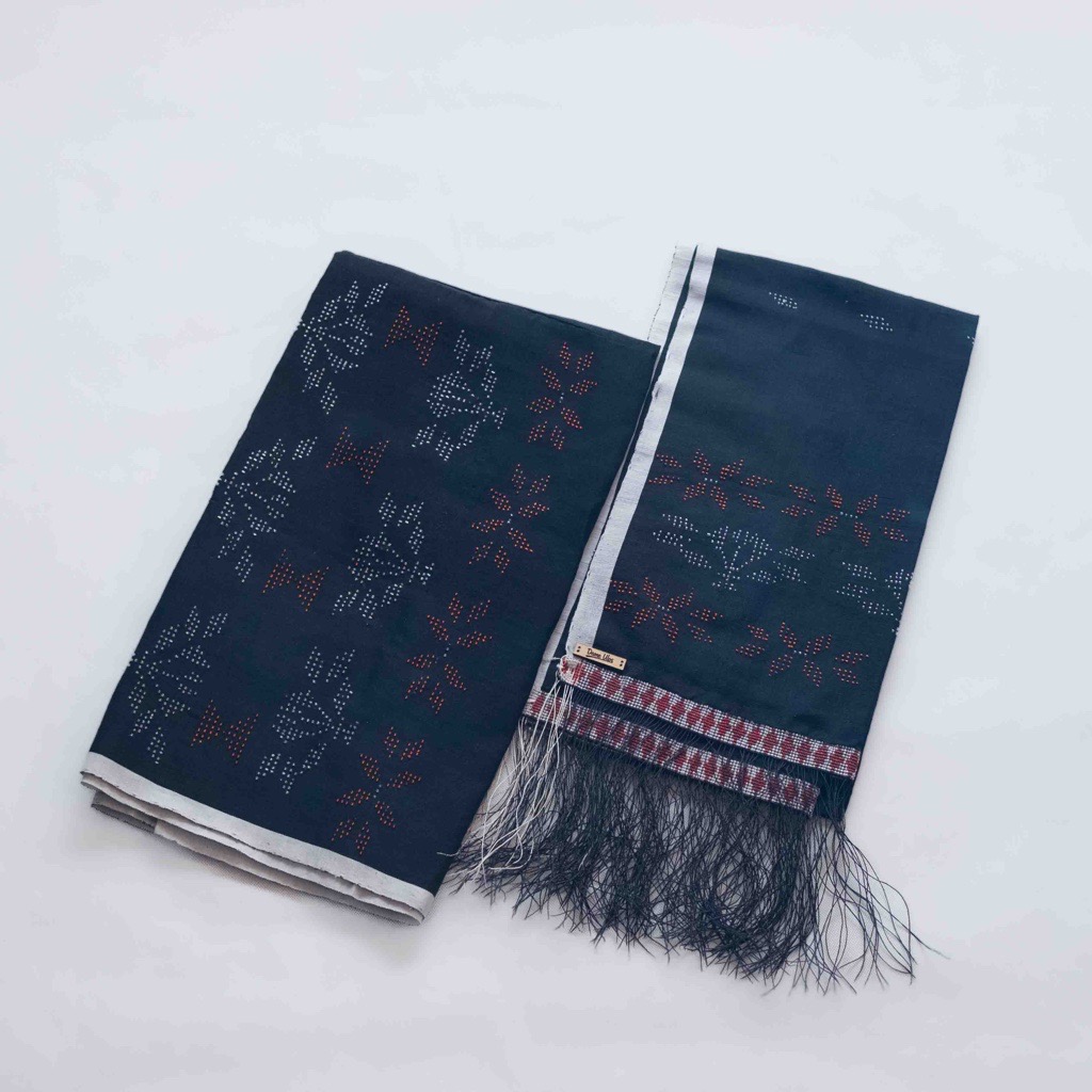 Pattern Meaning: Kain Tenun Mandar motif Bunga Sape' (Bunga yang Patah) : Motif ini menyimbolkan sebuah harapan di tengah keterpurukan. Bahwa sesuatu yang tak utuh pun bisa tetap bermakna dan bernilai.