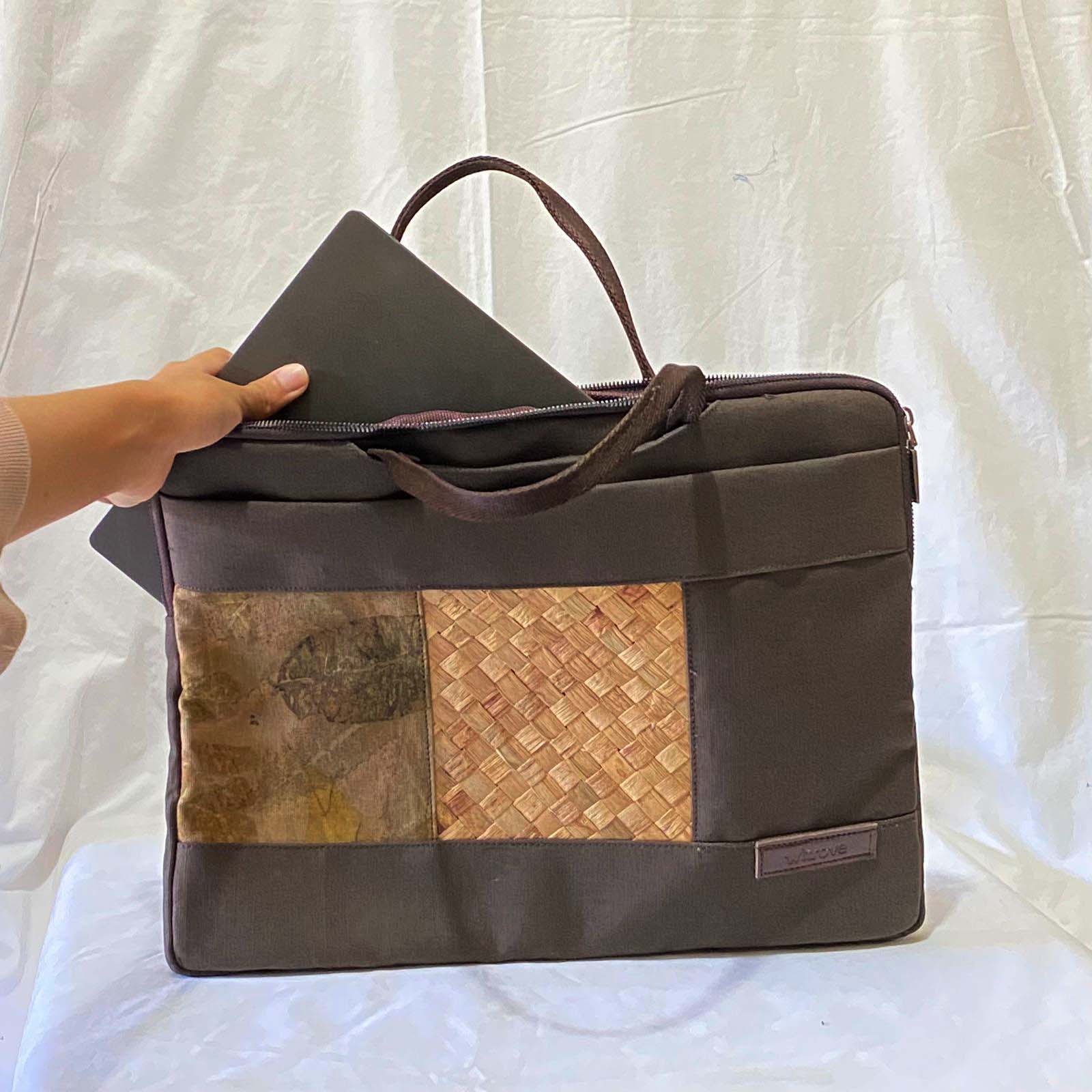 Water hyacinth Laptop Bag with ecoprint fabric combination