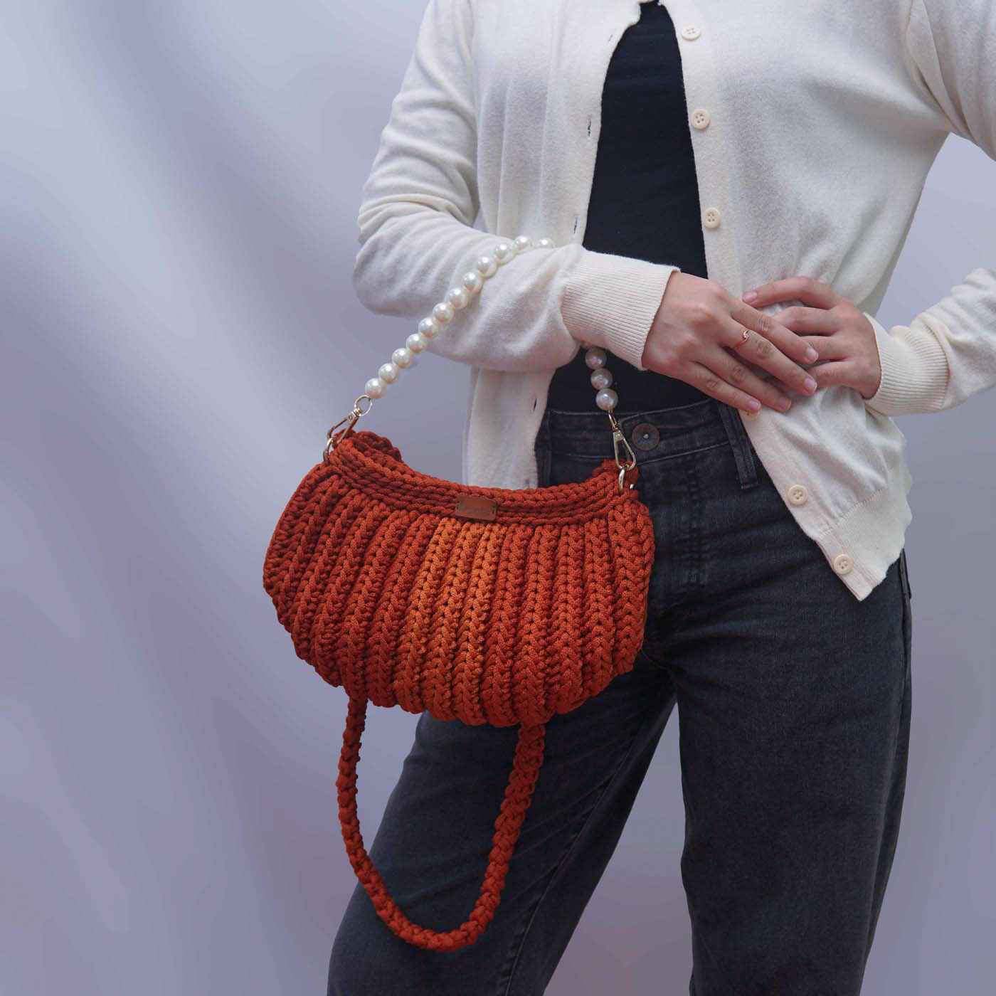 A shoulder bag model with a modern style with pearl accents can be used as a handbag