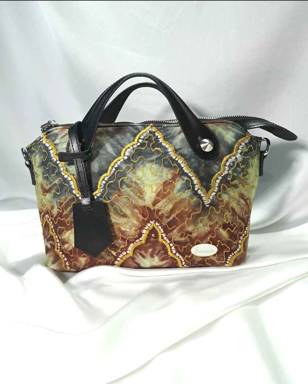 Tas ini merupakan hasil dari kreasi decoupage dengan keunikan di motifnya yang berasal dari tissue bermotif di atas media anyaman pandan. Inovasi kami di tas ini adalah dengan menggunakan tissue dengan motif kearifan lokal khas Bangka Belitung yaitu alat music dambus. Tas ini memiliki ukuran yang medium dan dilengkapi dengan penutup resleting, stok tersedia dan bisa dipesan dalam jumlah banyak dengan sistem PO serta bisa juga costum motif nya.