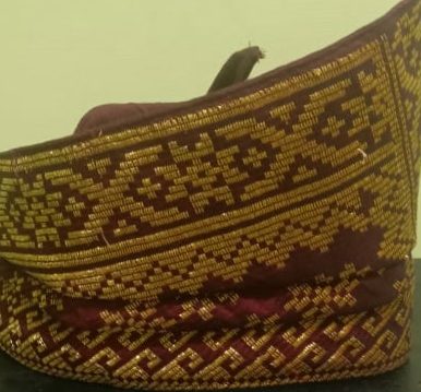 Jenis Bahan: Anyaman pandan dengan motif dari tissue (Pandan weaving with a motif from tissue)