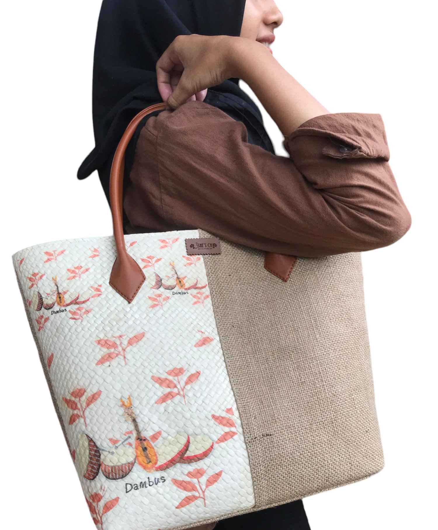 Tas ini merupakan hasil dari kreasi decoupage dengan keunikan di motifnya yang berasal dari tissue bermotif di atas media anyaman pandan dengan kombinasi bahan goni. Inovasi kami di tas ini adalah menggunakan tissue dengan motif kearifan local khas Bangka Belitung yaitu Dambusi Variasi. Tas ini memiliki ukuran yang besar dengan dilengkapi resleting dan tali Panjang. Stok tersedia dan bisa dipesan dalam jumlah banyak dengan sistem PO. Serta bisa juga costum untuk motifnya.