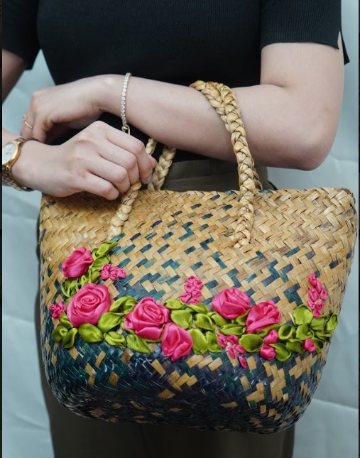 Jenis Bahan: Anyaman pandan kombinasi kain goni dengan motif dari tissue