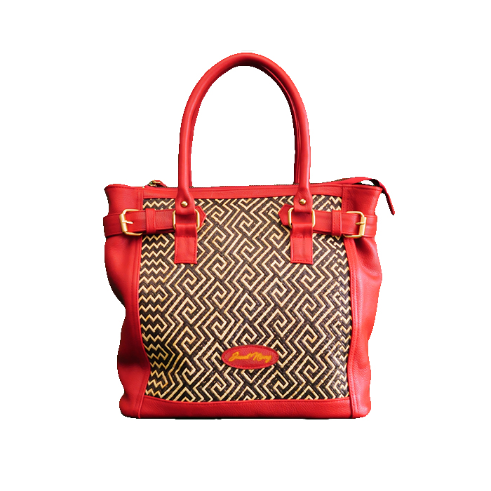 Jenis Bahan: Anyaman pandan dengan motif dari tissue (Pandan weaving with a motif from tissue)