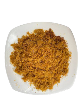 Abon yang terbuat dari daging kepiting dicampur dengan aneka bumbu rempah yang di sangrai. Cocok dihidangkan dengan nasi hangat atau dijadikan bahan taburan aneka hidangan.