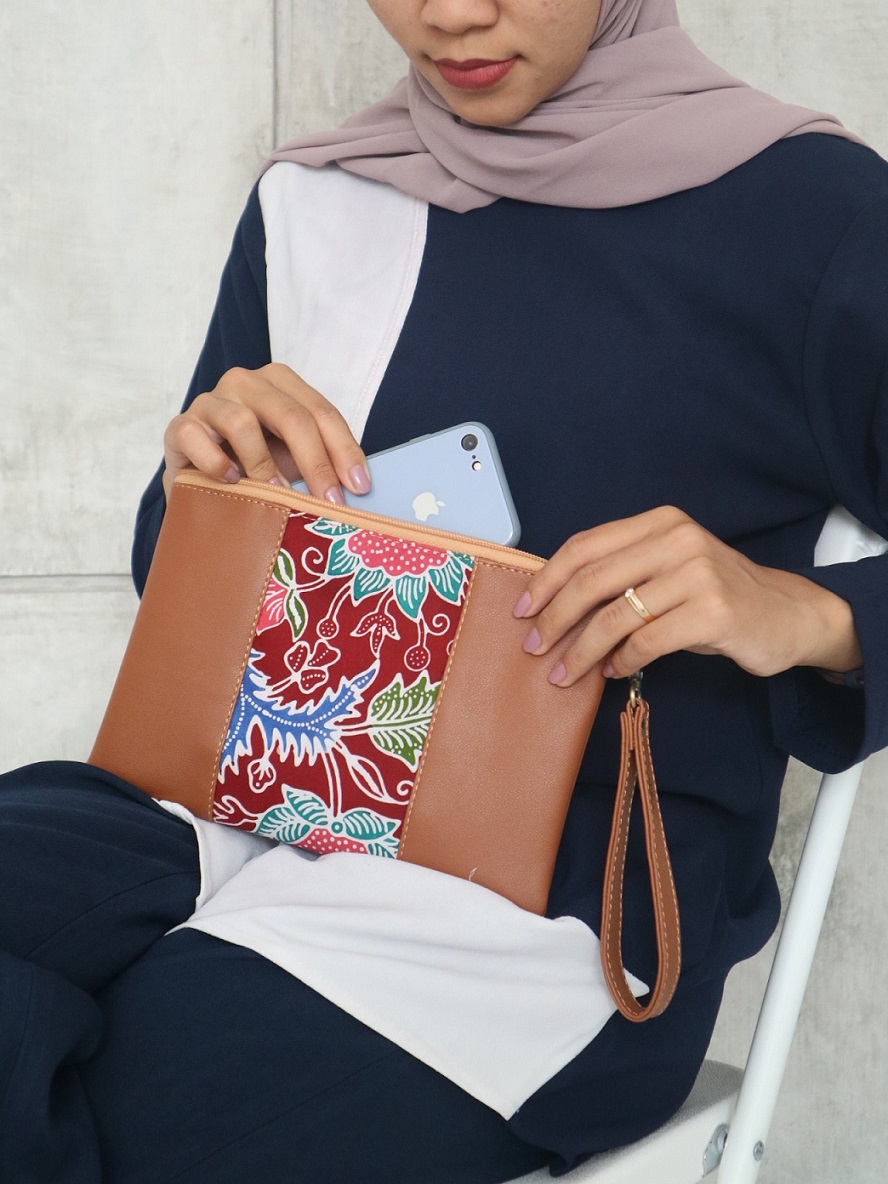 Terbuat dari bahan tenun ikat, kulit sintetis premium, inner katun, aksesoris black nikel, resleting.