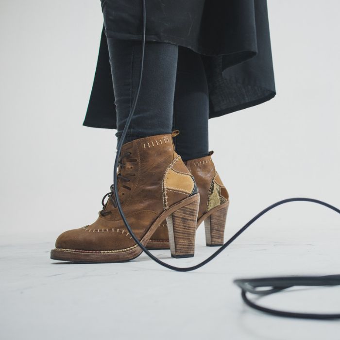 Sepatu Boots wanita Sisirangan Heels, dengan desain khusus tipe wingtip menggunakan bahan kulit sapi jenis Crazy Horse atau Pull Up dan outsole menggunakan sol komando. Dan juga pada beberapa bagian menggunakan bahan recycle yang membuat setiap desain memiliki keunikan tersendiri. Konstruksi Veltschoen membuat boots ini tahan lama, kuat dan juga mudah untuk penggantian sol apabila suatu saat sol perlu diganti.