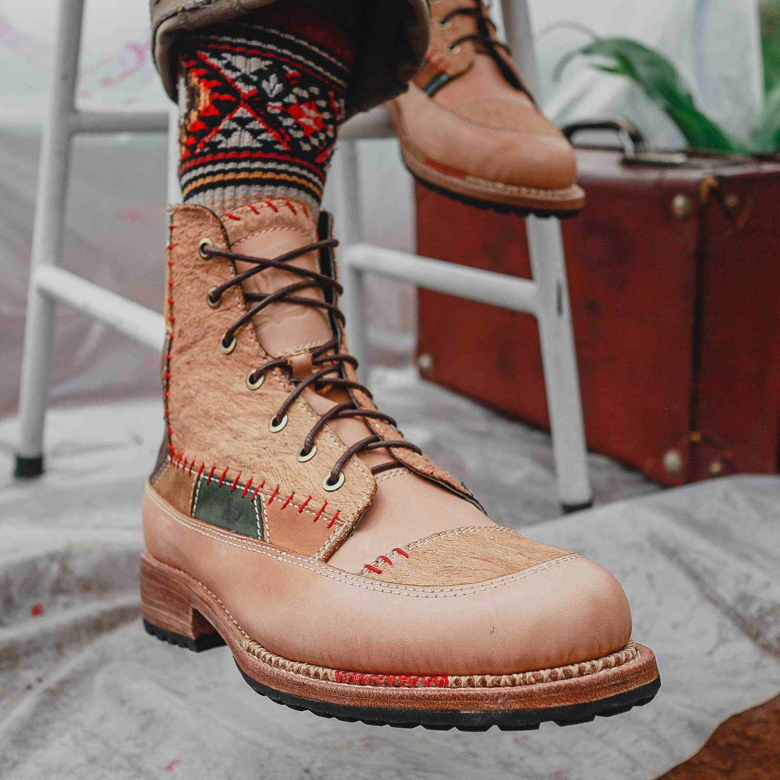 Bhinneka Boots adalah sepatu yang sangat unik karena terbuat dari serat kayu atau kulit kayu, di mana bahan ini merupakan bahan pakaian yang digunakan oleh masyarakat Indonesia pada zaman dahulu. Selain itu, sepatu boots ini juga menggunakan kain tenun khas Indonesia dan kulit nabati sebagai bahan utamanya.