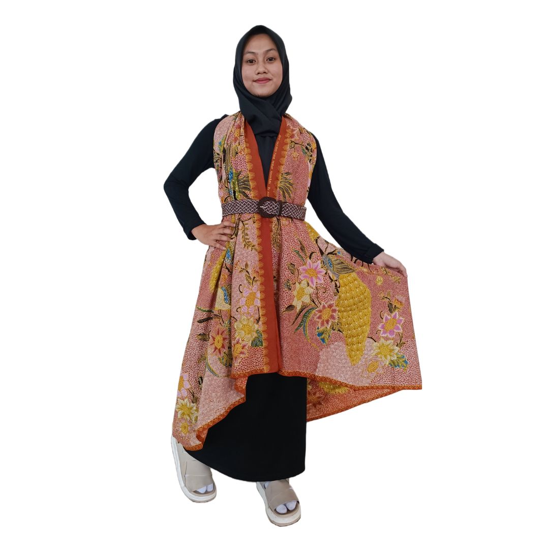 Makna Motif: Burung merak (Peacock) di berbagai belahan dunia dianggap sebagai simbol keindahan. Burung merak dianggap sebagai metafora manusia mulia, kepala/mahkotanya adalah kebajikan, sayap adalah tanggungjawab, punggung adalah perbuatan baik, dada adalah kemanusiaan, dan perut adalah sifat terpercaya. Begitu juga dalam budaya nusantara, Merak menjadi simbol keindahan kecantikan dan kebesaran. Sehingga merak seringkali menjadi motif dalam karya karya untuk menggambarkan keindahan, kebesaran, cinta kasih, atau kemuliaan. Sepasang burung merak dengan ekor menjuntai seperti “hidup” di dalam hamparan kain. Mereka bercengkrama di atas dahan mungil saling mencintai, saling menjaga, dan saling melindungi.