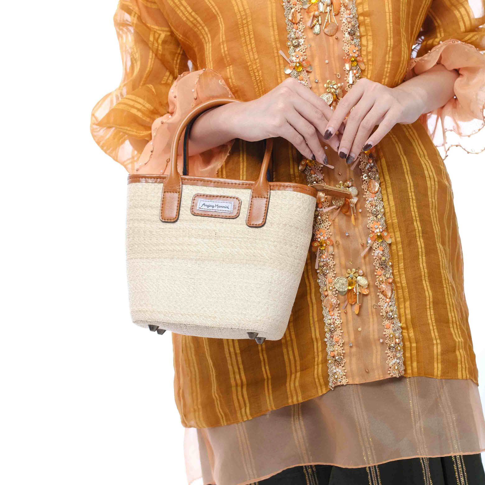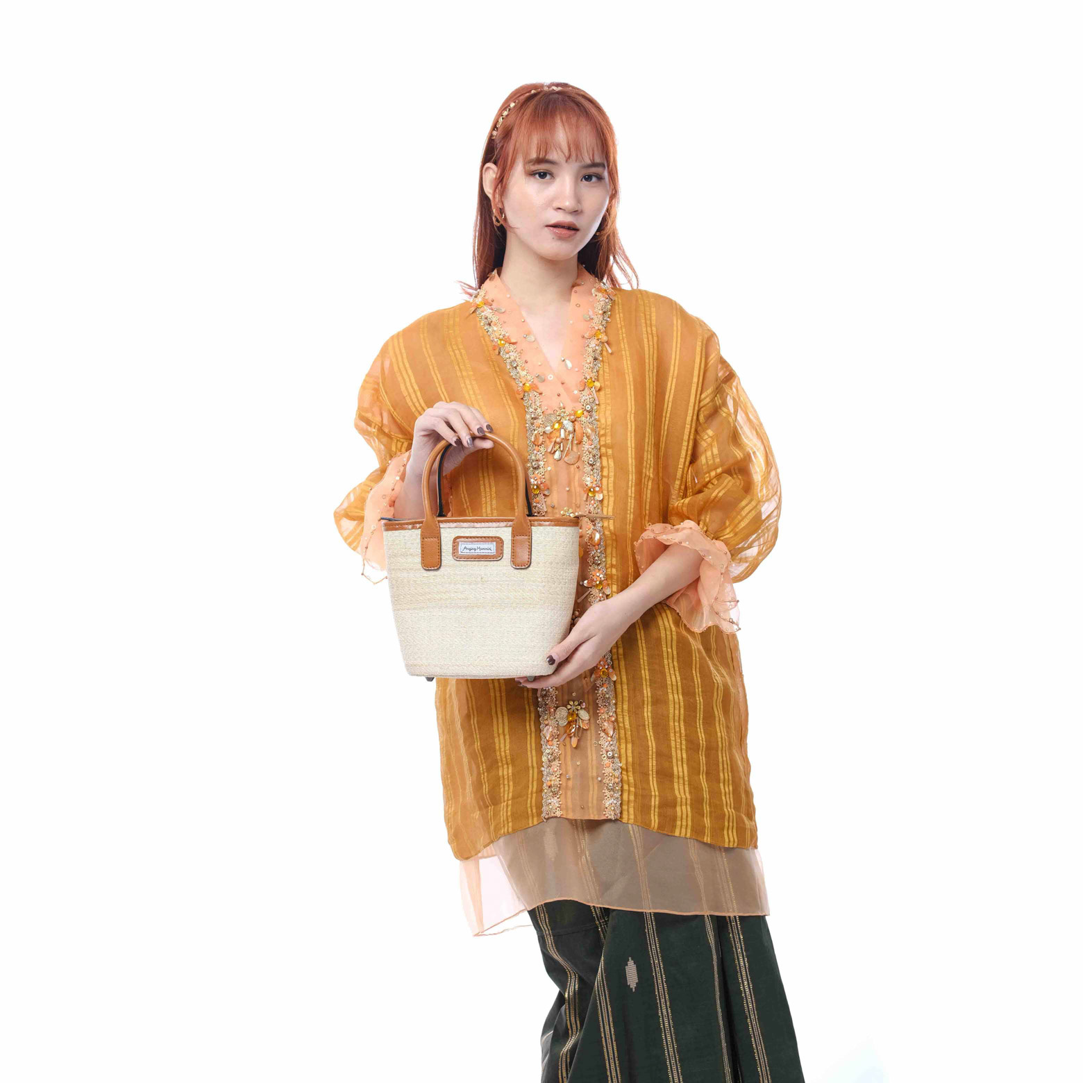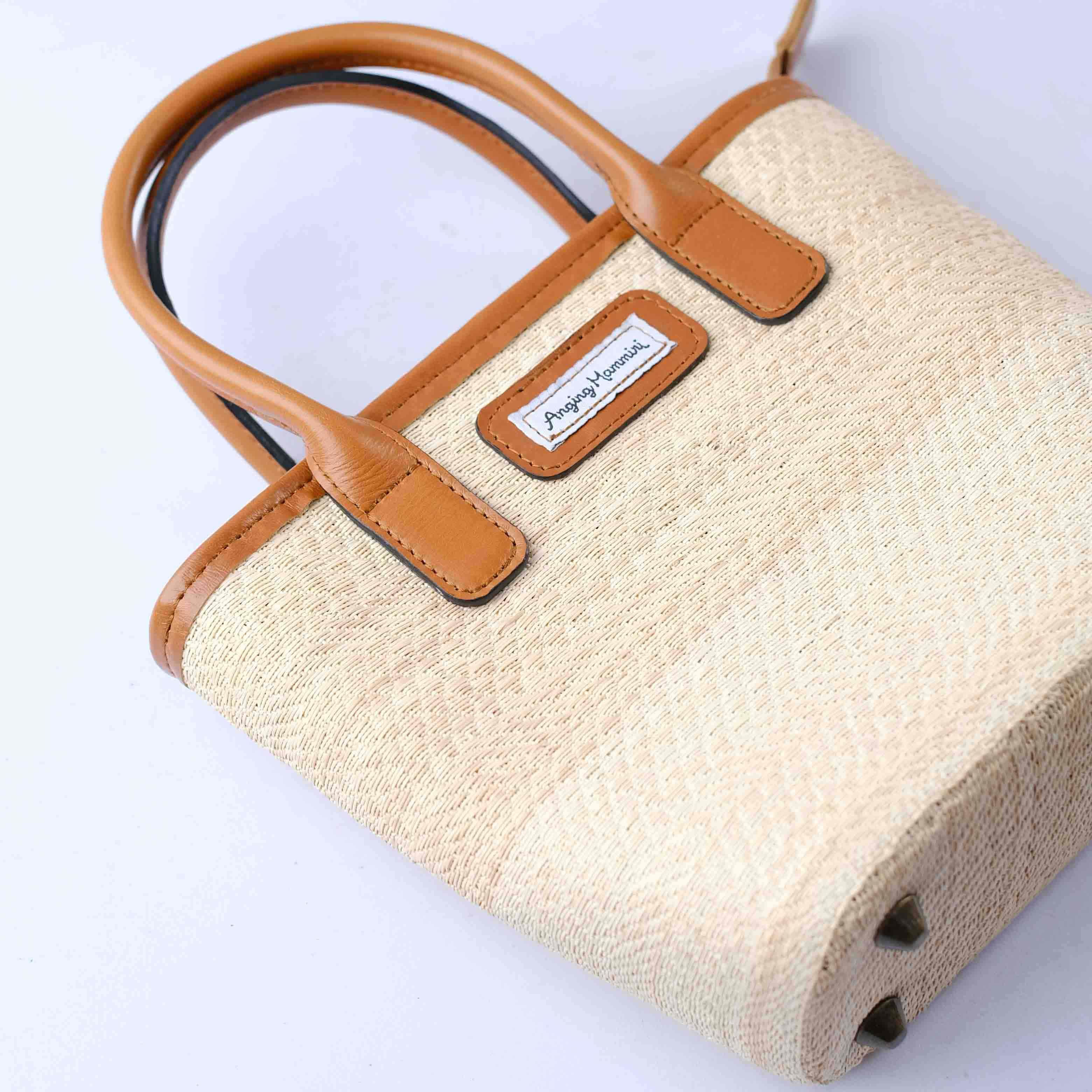 Tas yang berbahan serat lontar yg dianyam dan dikerjakan secara manual. Bahan serat yang halus, kuat dan ringan. Dapat digunakan pada waktu santai maupun formal