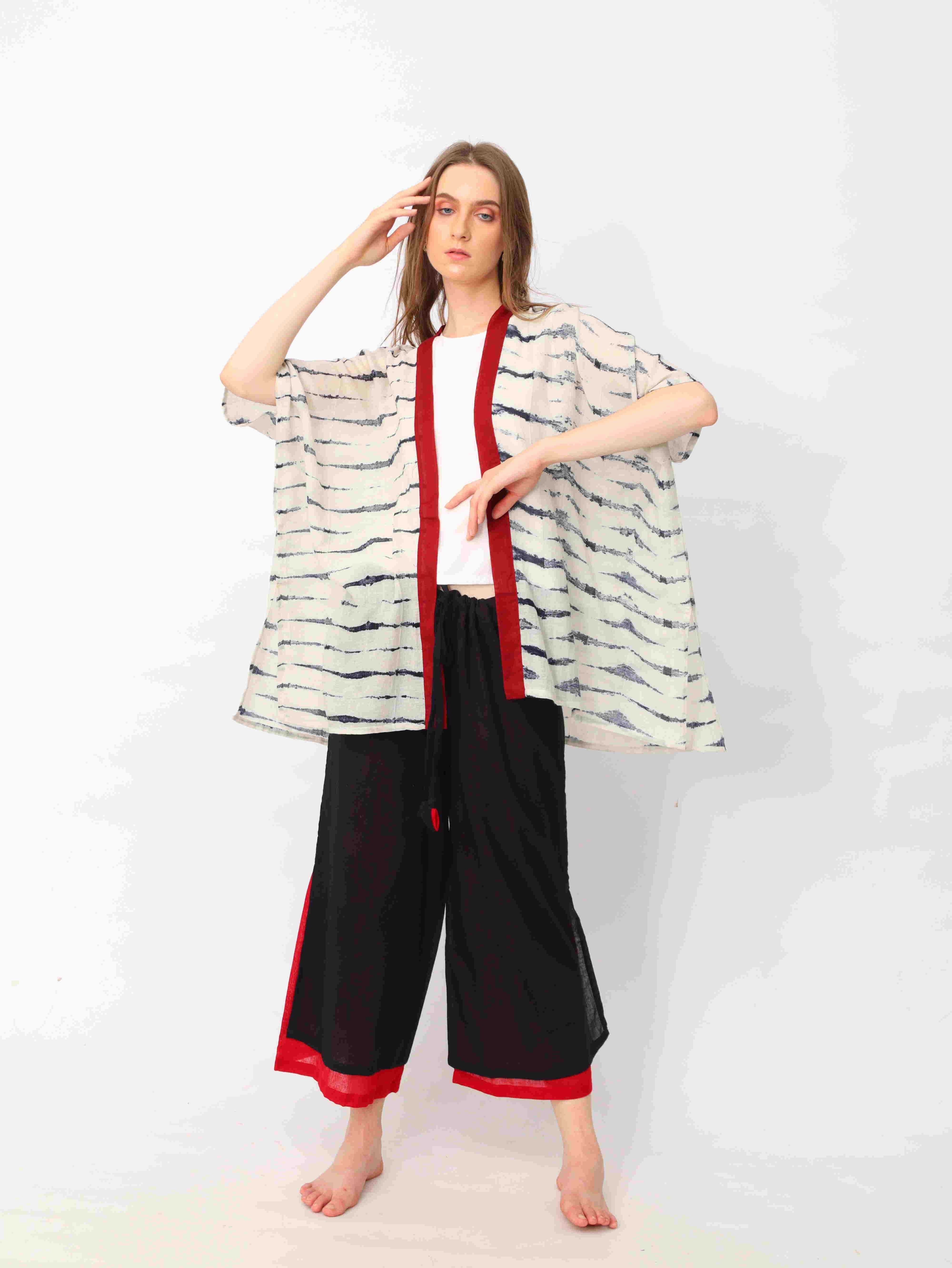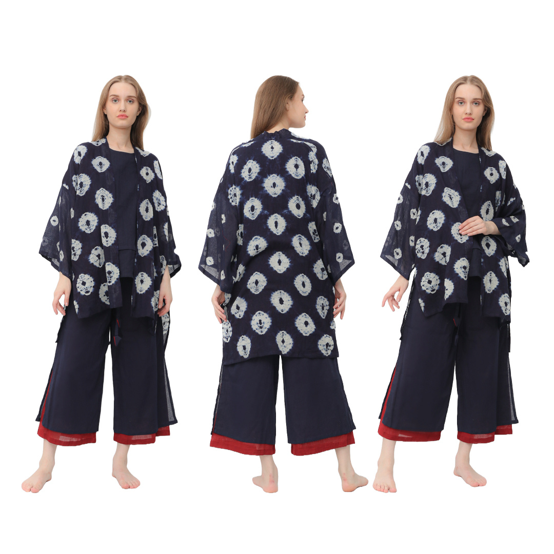Animorfosa membuat produk Clothing ready to wear dengan material tekstil bermotif shibori yang diproses dengan tangan manual.