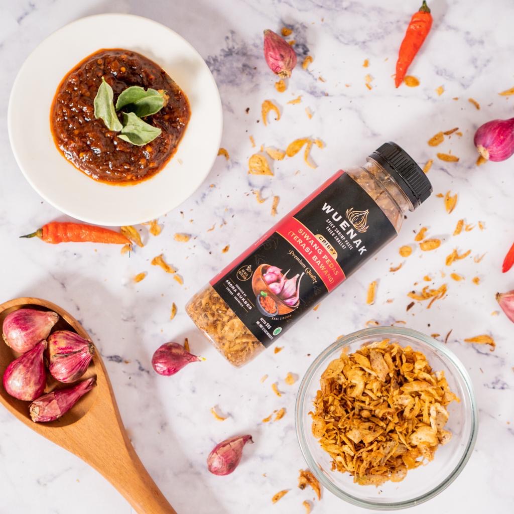 Dimulai pada tahun 2017, selama ini kami selalu berusaha menjaga kualitas produk kami sehingga hampir seluruh pelanggan kami suka dengan Bawang Goreng WUENAK. Produk telah dijual di 20 an modern retail market, sudah diekspor ke Australia, dipakai di restoran Indonesia di Sydney dan digunakan sebagai condiment di Black Garlic Arirang Noodle dari Gaga Food. Kami menggunakan minyak kelapa yang lebih sehat, tidak pakai tepung, dan menggunakan teknik penirisan khusus sehingga menghasilkan bawang goreng yang sangat kering dan renyah. Bahan baku menggunakan Bawang Putih Kating yang lebih kuat aroma dan rasanya serta Bawang Sumenep dari wilayah sekitar Cirebon yang menghasilkan bawang goreng premium.