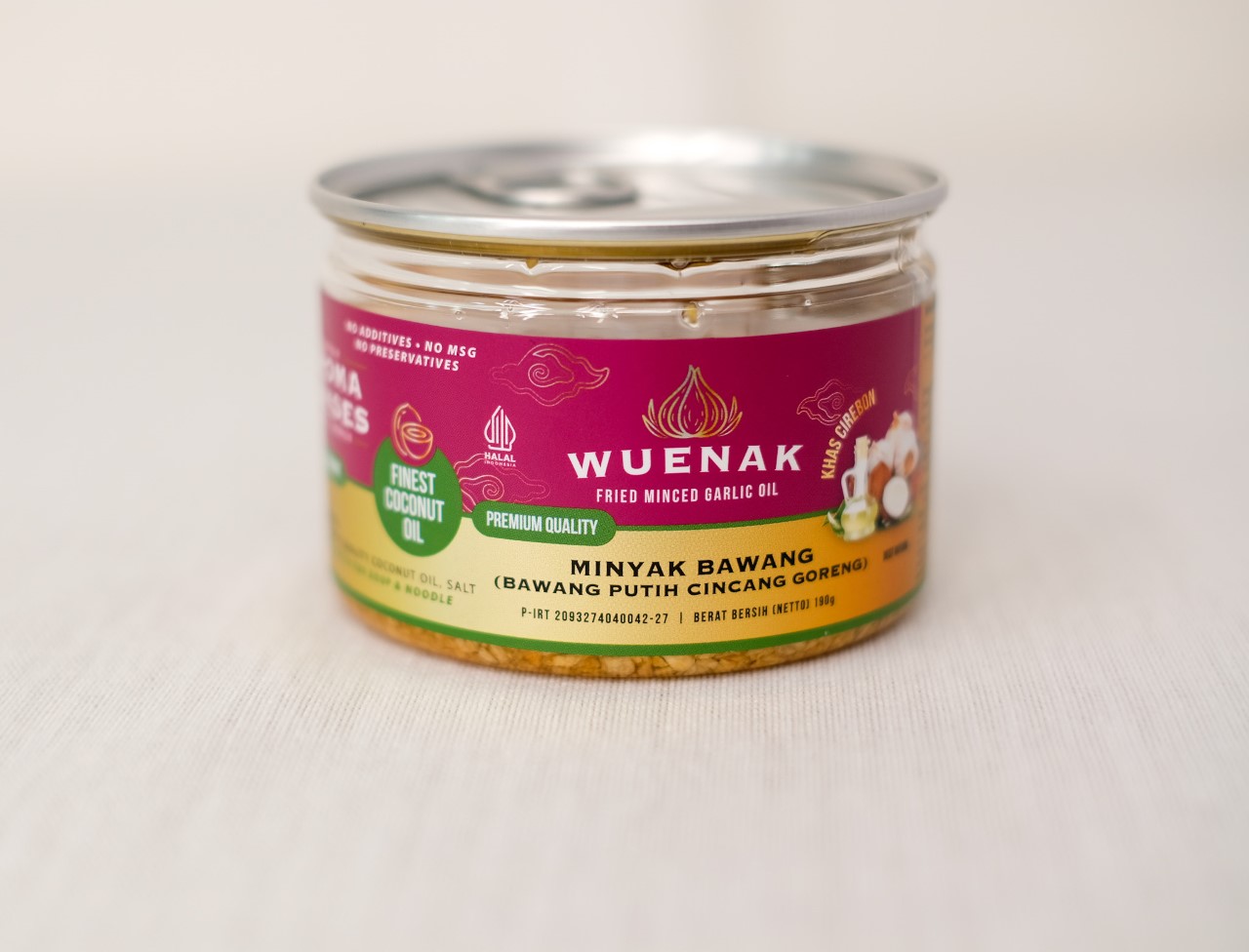 Dimulai pada tahun 2017, selama ini kami selalu berusaha menjaga kualitas produk kami sehingga hampir seluruh pelanggan kami suka dengan Bawang Goreng WUENAK. Produk telah dijual di 20 an modern retail market, sudah diekspor ke Australia, dipakai di restoran Indonesia di Sydney dan digunakan sebagai condiment di Black Garlic Arirang Noodle dari Gaga Food. Kami menggunakan minyak kelapa yang lebih sehat, tidak pakai tepung, dan menggunakan teknik penirisan khusus sehingga menghasilkan bawang goreng yang sangat kering dan renyah. Bahan baku menggunakan Bawang Putih Kating yang lebih kuat aroma dan rasanya serta Bawang Sumenep dari wilayah sekitar Cirebon yang menghasilkan bawang goreng premium.