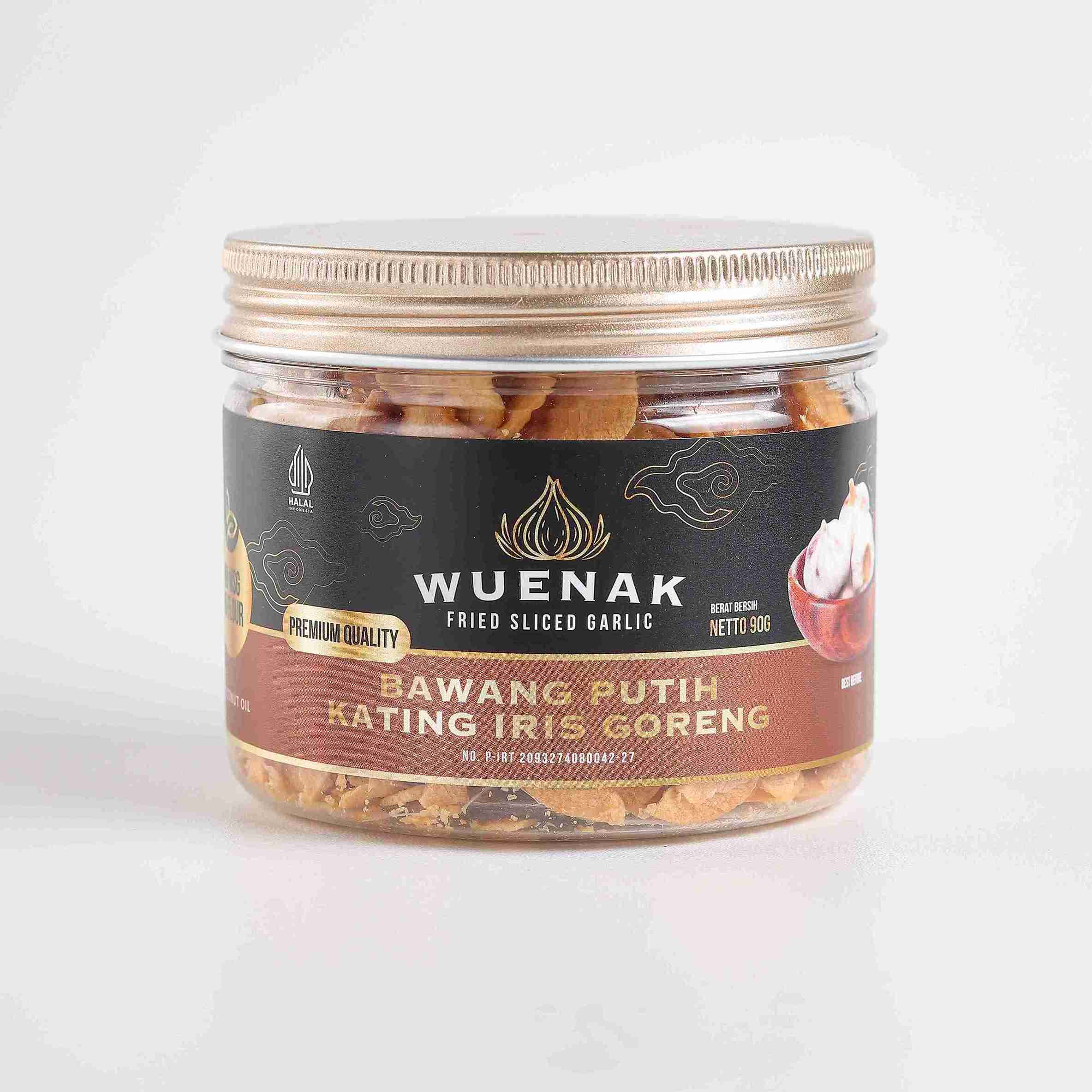 Dimulai pada tahun 2017, selama ini kami selalu berusaha menjaga kualitas produk kami sehingga hampir seluruh pelanggan kami suka dengan Bawang Goreng WUENAK. Produk telah dijual di 20 an modern retail market, sudah diekspor ke Australia, dipakai di restoran Indonesia di Sydney dan digunakan sebagai condiment di Black Garlic Arirang Noodle dari Gaga Food. Kami menggunakan minyak kelapa yang lebih sehat, tidak pakai tepung, dan menggunakan teknik penirisan khusus sehingga menghasilkan bawang goreng yang sangat kering dan renyah. Bahan baku menggunakan Bawang Putih Kating yang lebih kuat aroma dan rasanya serta Bawang Sumenep dari wilayah sekitar Cirebon yang menghasilkan bawang goreng premium.
