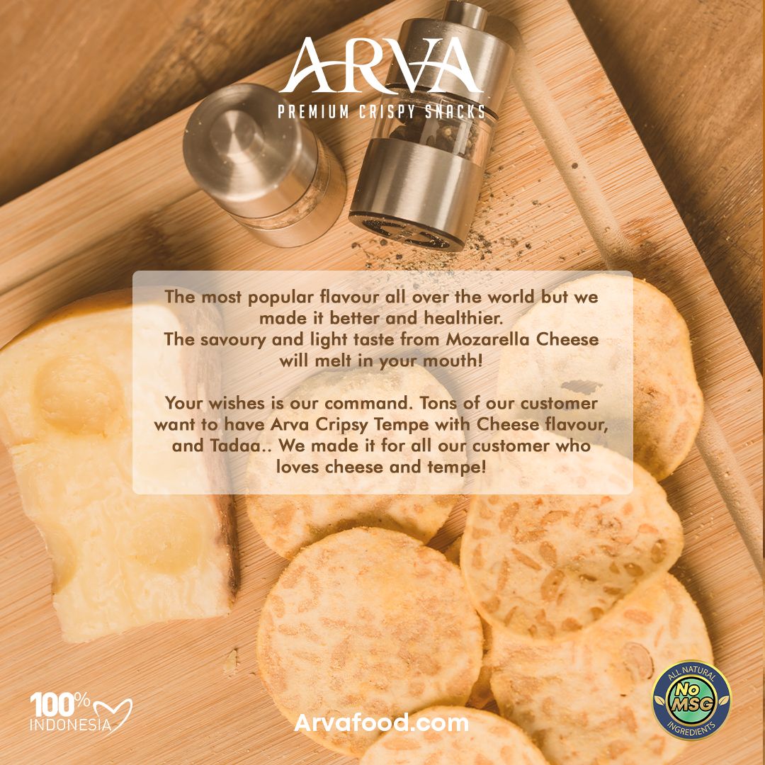 ARVA Crispy Snacks lahir dari resep tradisional khas Indonesia (Tempe) yang digabungkan dengan citarasa Internasional (Truffle) sehingga terciptalah aroma Truffle yang kuat dengan rasa klasik dari Tempe itu sendiri. ARVA sendiri dibuat dengan konsep healthy style, bahan-bahan yang kami gunakan alami tanpa pengawet dan tidak menggunakan MSG. Salah satu misi dari kami adalah untuk tetap melestarikan produk dan budaya Indonesia sehingga kami dapat memperkenalkannya kepada seluruh dunia (ekspor).