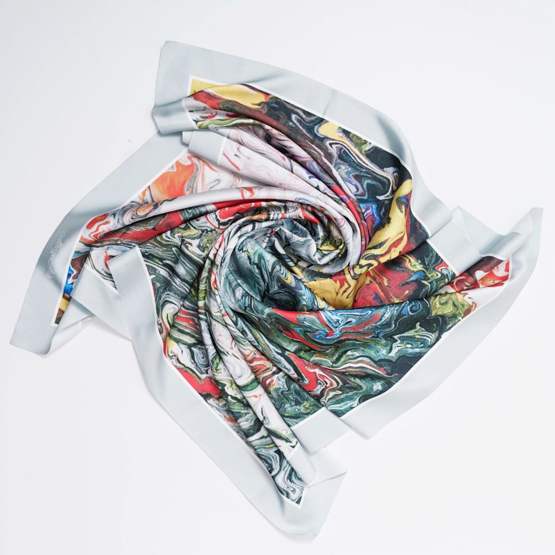 Makna Motif: Dalam imajinasinya, lukisan tersebut adalah gulungan ombak di kedalaman laut yang terjadi pada saat bencana Tsunami di Aceh beberapa tahun lalu yang mengakibatkan banyak kesedihan yang dialami oleh anak-anak yang kehilangan keluarga dan tempat tinggal. Proses melukis karya ini menggunakan solet.