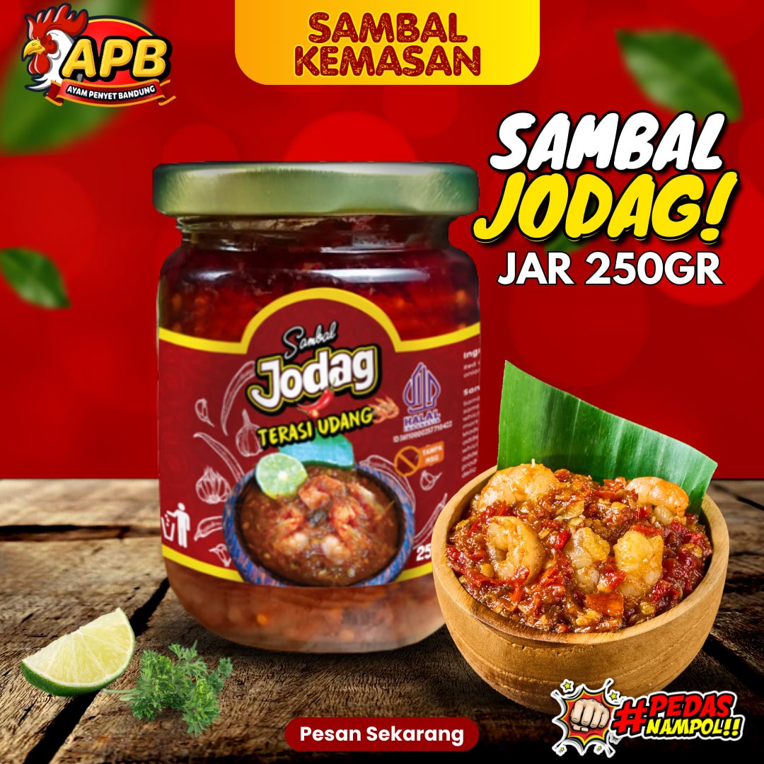 APB mempersembahkan Sambal Jodag, sambal yang nikmat dan membuat ketagihan. Terbuat dari terasi khas Cirebon dan cabai rawit merah pilihan, diracik dengan rempah-rempah berkualitas untuk rasa yang khas dan menggugah selera. Resep turun-temurun dari keluarga, sering disajikan dalam cobek besar pada acara keluarga dengan terasi udang asli yang harum dan racikan rempah yang menghasilkan rasa yang nikmat dan bikin ketagihan. Diproses dengan standar keamanan pangan tinggi, termasuk sterilisasi dan pasteurisasi. Cocok sebagai pelengkap ayam goreng, ikan bakar, dan nasi goreng dengan rasa pedas yang pas untuk semua lidah.