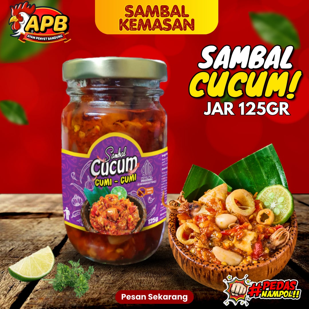 APB mempersembahkan Sambal Cucum, sambal cumi yang unik dan bikin nagih. Terbuat dari cumi asin segar yang dipadukan dengan racikan sambal Ceurik dan rempah-rempah khas Indonesia, menghasilkan rasa sambal yang sangat otentik bagi pecintanya. Bahan baku lokal pilihan dari petani diolah secara higienis dan dikemas secara steril, memastikan kualitas dan keamanan pangan.