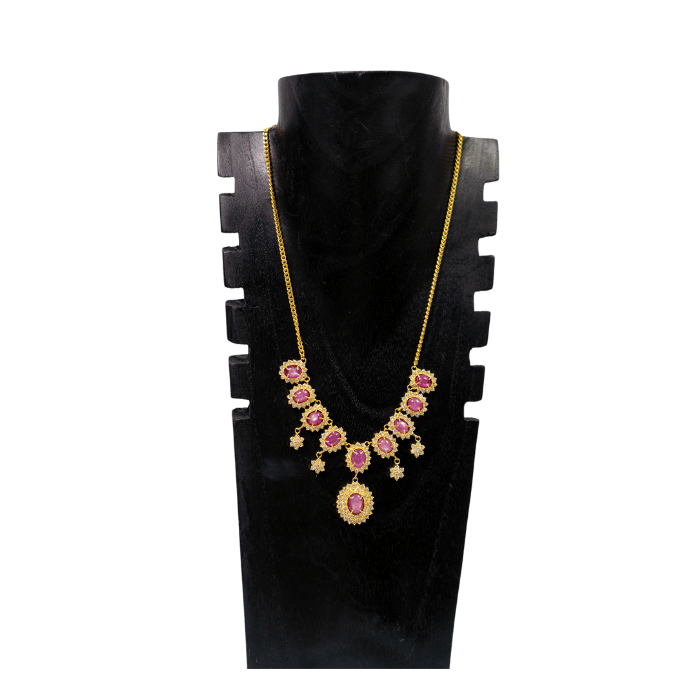 Kalung kebun raja mirah merupakan set kalung silver 925 yang terdiri dari kalung anting dan bross berbahan dasar perak yang di gold plated dan dihias dengan batu pertama mirah dan sirkon