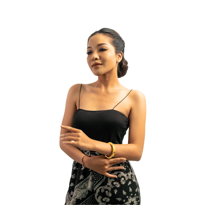 Gelang sudira terbuat dari silver dan permata batu mirah dan batu hijau