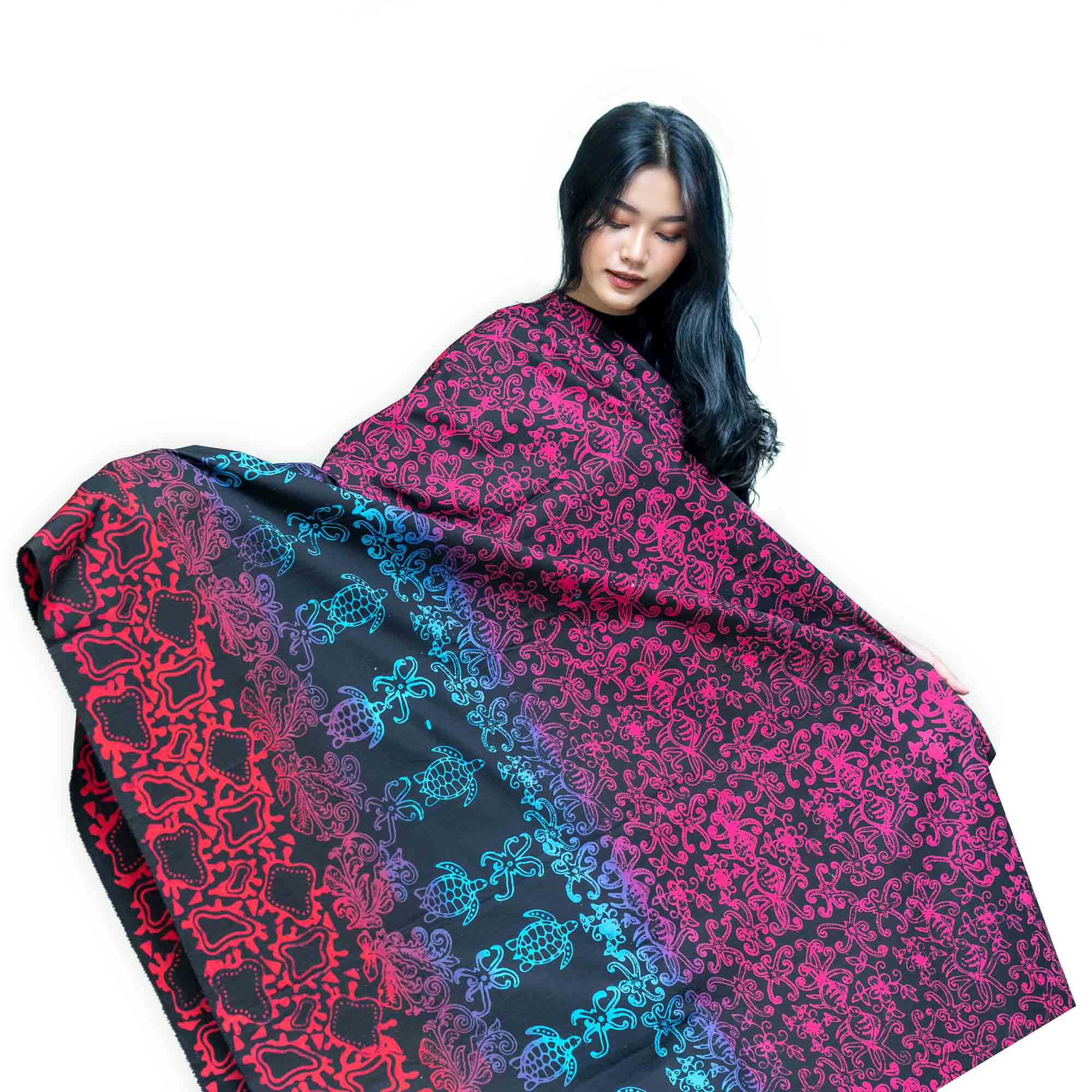 Makna Motif: Batik cap dengan sistem pewarnaan kontemporer mengangkat motif kura-kura yang merupakan salah satu biota laut yang paling banyak di temui di Bontang.