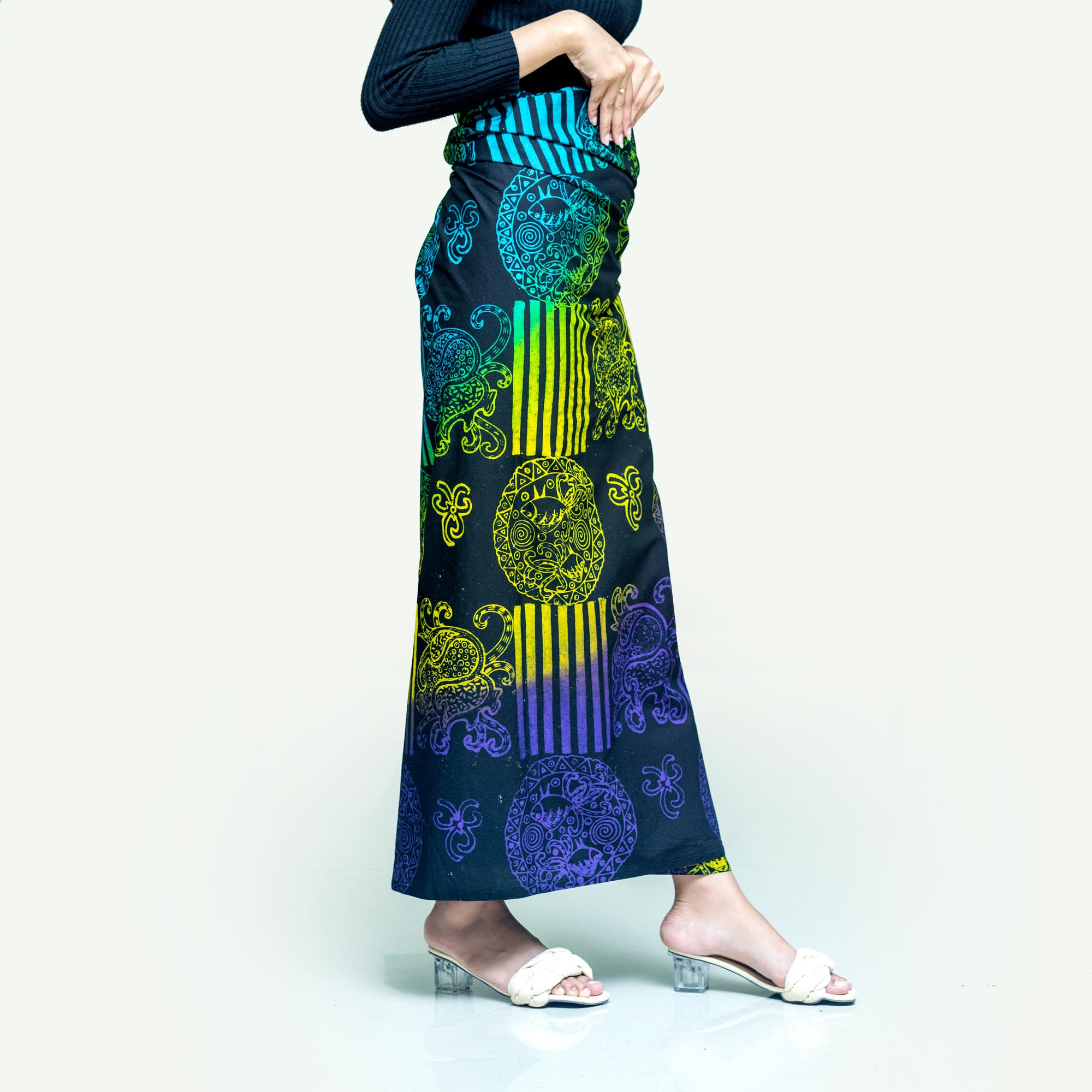 Makna Motif: Batik cap dengan sistem pewarnaan kontemporer mengangkat motif ikan bawis yang merupakan ikan yang paling banyak di temui di Bontang.
