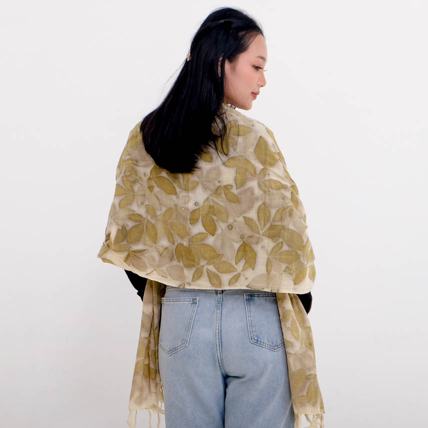 Pewarna alami dihasilkan dari daun-daun pilihan disekitar rumah, kulit buah-buahan pilihan, kulit kayu. Dahon sendiri adalah pohon palem/nipah Buah dahon memiliki warna pink peach, merah sampai abu. Untuk membentuk motif pada kain dilakukan dengan cara menempel bentuk asli tumbuhan ke permukaan kain yang telah mengalami proses mordan. Proses Ecoprint dapat dilakukan pada kain yang tidak terbuat dari bahan sintetis. Dari Proses EcoPrint ini menghasilkan kain yang telah bermotif, sehingga dapat diolah menjadi berbagai macam produk turunannya. motif akan menjadi eksklusif. Teknik ini prosesnya sederhana, tak menggunakan mesin dan tentunya ramah lingkungan. Produk : Kain, Tas, Totebag, Pasmina, Sepatu, Cluth, dan Topi.