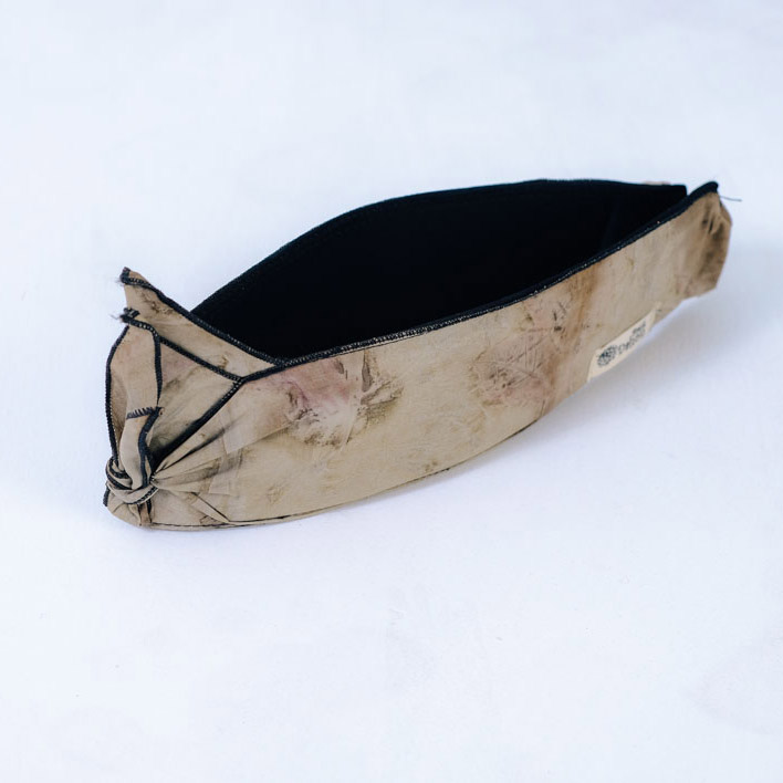 Pewarna alami dihasilkan dari daun-daun pilihan disekitar rumah, kulit buah-buahan pilihan, kulit kayu. Dahon sendiri adalah pohon palem/nipah Buah dahon memiliki warna pink peach, merah sampai abu. Untuk membentuk motif pada kain dilakukan dengan cara menempel bentuk asli tumbuhan ke permukaan kain yang telah mengalami proses mordan. Proses Ecoprint dapat dilakukan pada kain yang tidak terbuat dari bahan sintetis. Dari Proses EcoPrint ini menghasilkan kain yang telah bermotif, sehingga dapat diolah menjadi berbagai macam produk turunannya. motif akan menjadi eksklusif. Teknik ini prosesnya sederhana, tak menggunakan mesin dan tentunya ramah lingkungan. Produk : Kain, Tas, Totebag, Pasmina, Sepatu, Cluth, dan Topi.