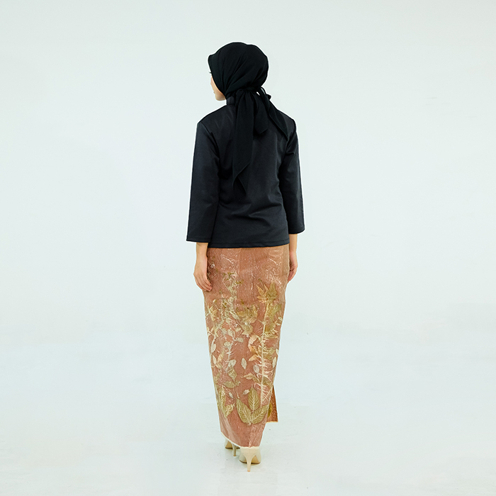 Pewarna alami dihasilkan dari daun-daun pilihan disekitar rumah, kulit buah-buahan pilihan, kulit kayu. Dahon sendiri adalah pohon palem/nipah Buah dahon memiliki warna pink peach, merah sampai abu. Untuk membentuk motif pada kain dilakukan dengan cara menempel bentuk asli tumbuhan ke permukaan kain yang telah mengalami proses mordan. Proses Ecoprint dapat dilakukan pada kain yang tidak terbuat dari bahan sintetis. Dari Proses EcoPrint ini menghasilkan kain yang telah bermotif, sehingga dapat diolah menjadi berbagai macam produk turunannya. motif akan menjadi eksklusif. Teknik ini prosesnya sederhana, tak menggunakan mesin dan tentunya ramah lingkungan. Produk : Kain, Tas, Totebag, Pasmina, Sepatu, Cluth, dan Topi.