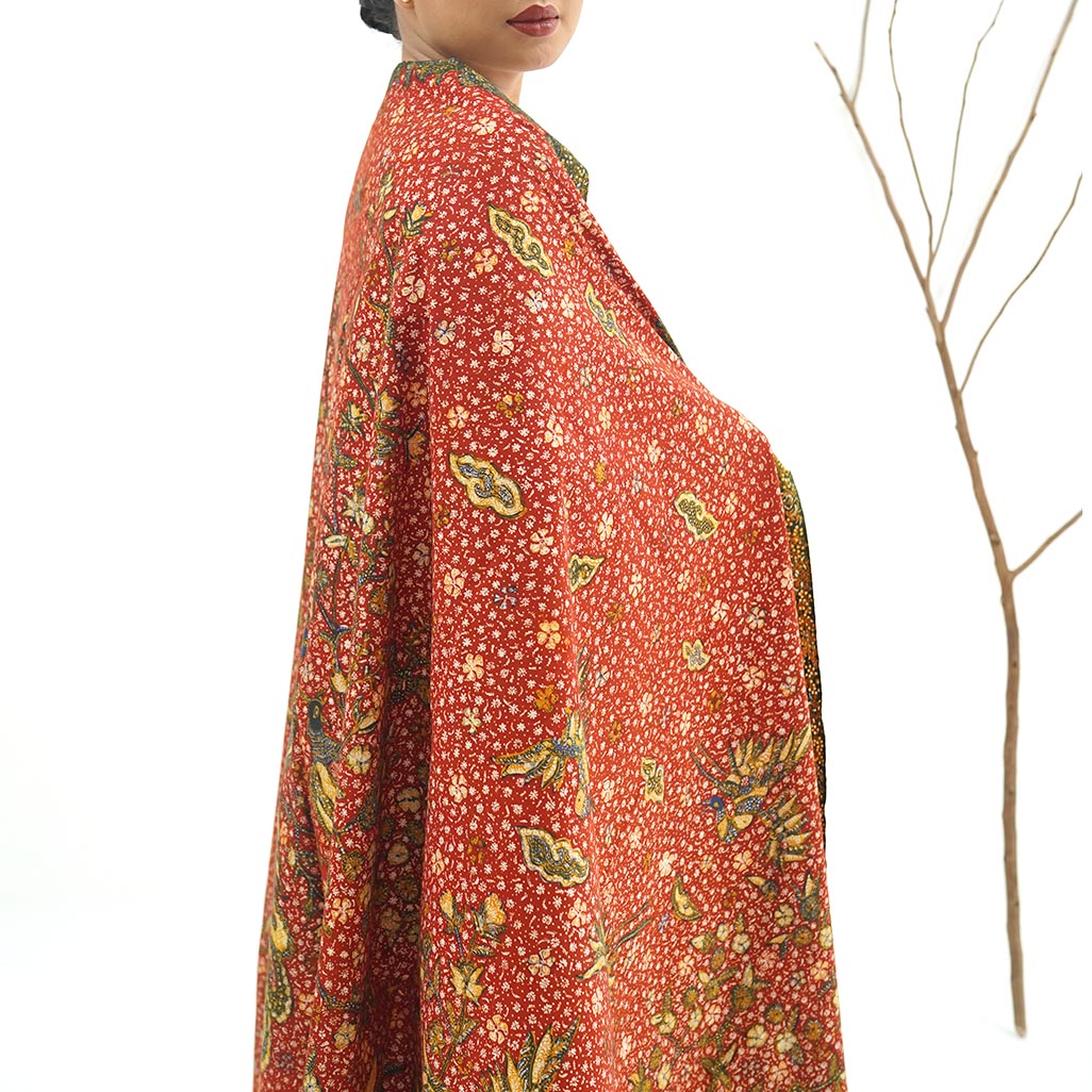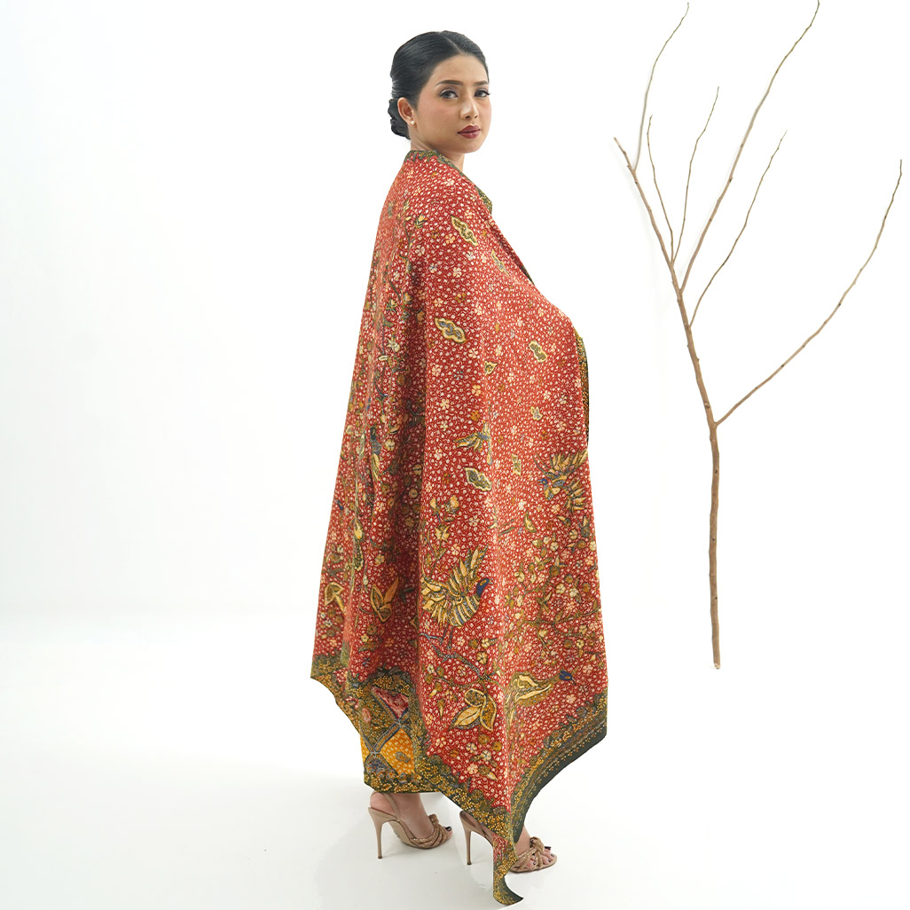 Makna Motif: Burung Merak yg bulunya indah dan sikapnya yg anggun melambangkan martabat dan keindahan