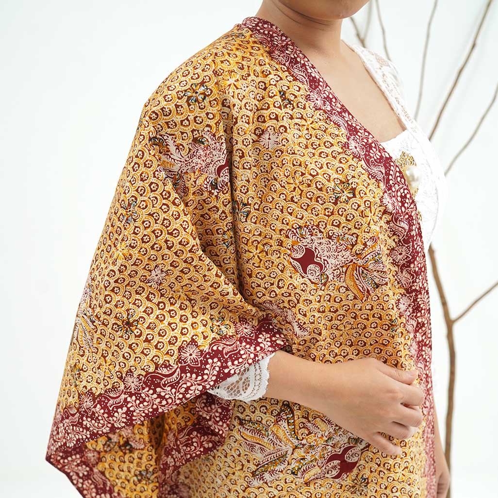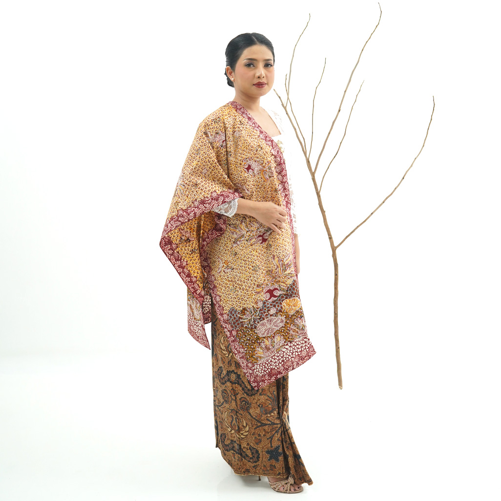Makna Motif: : Selendang 3 negeri motif ikan koki . Ikan koki yg berkilat seperti emas melambangkan kekayaan yg berkelimpahan . Juga melambangkan ketenangan, kesabaran, harmoni , kebijaksanaan dan umur panjang. Gringsing melambangkan kesehatan dan sebagian orang memaknai sebagai tolak bala
