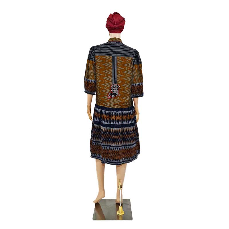 Ukuran: Lingkar badan: 104cm Kerung lengan: 50cm Lebar bahu: 12cm Lebar punggung: 38cm Panjang lengan: 44cm Lubang lengan: 30cm Panjang dress: 110cm Lengan balon 7/8 Lapis furing golden mella