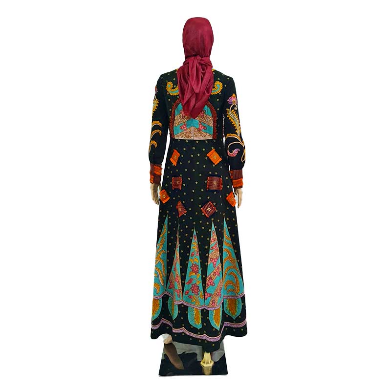 Ukuran: Lingkar badan: 90cm Lingkar linggang: 80cm Lingkar pinggul: 112cm Panjang dress: 145cm Lebar bahu: 12cm Lebar punggung: 38cm Kerung lengan: 48cm Panjang lengan: 59cm Lubang lengan: 22cm