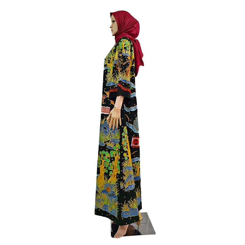 Ukuran: Lingkar badan: 94cm Lingkar pinggang: 90cm Lingkar pinggul: 116cm Lebar bahu: 12cm Lebar punggung: 38cm Kerung lengan: 48cm Panjang lengan: 46cm Lubang lengan: 56cm Panjang dress: 145cm
