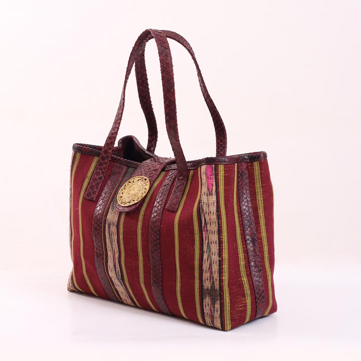 Jenis Bahan: Tenun Ikat Ulap Doyo kombinasi, kulit asli, suede, aksesories tas